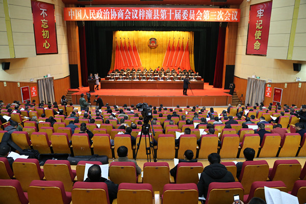 红梅吐艳妆盛世,瑞雪纷飞兆丰年。伴随着庄严的《国歌》声,政协梓潼县第十届委员会第三次会议于2018年1月17日下午2:00在梓潼影剧院隆重开幕。195名县政协委员将在三天的时间里,认真履行政治协商、民主监督、参政议政职能,围绕关系我县发展大局的重大问题和人民群众普遍关心的热点、难点问题,积极建言献策,共商梓潼跨越式发展大计。