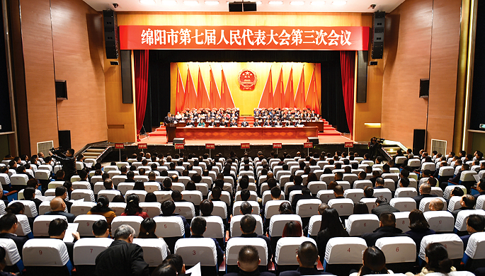 1月2日,绵阳市第七届人民代表大会第三次会议开幕(绵阳日报记者 张莉 摄)